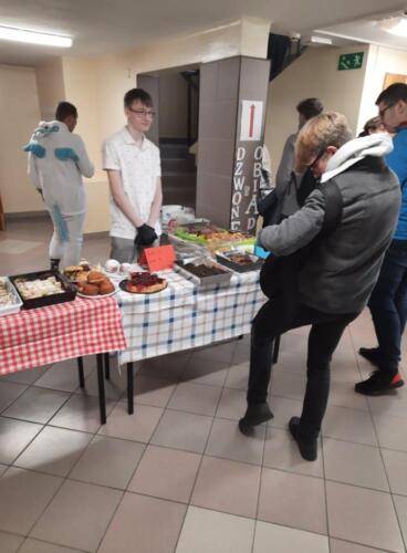 16 listopada w naszej szkole aromat domowych wypieków rozchodził się po szkolnych korytarzach. Pączki, babeczki, rogaliki oraz inne słodkości zachęciły nie tylko wszystkich uczniów do ich zakupu, ale także nauczycieli. Ilość ciast oraz zaangażowanie uczniów przerosła najśmielsze oczekiwania. Fundusze zebrane podczas kiermaszu zostaną przekazane do Fundacji ,,Być bardziej”, która przeznaczy je na wykupienie kolejnych obiadów dla uczniów z całej Polski. Był to bardzo wesoły i przyjemny dzień dla uczniów, ale jakże pracowity dla wolontariuszy Szkolnego Koła Wolontariatu.
