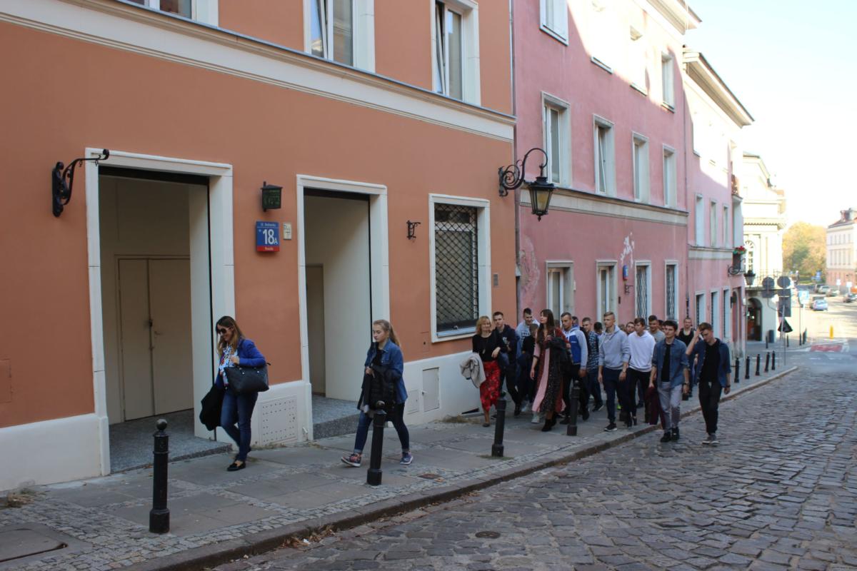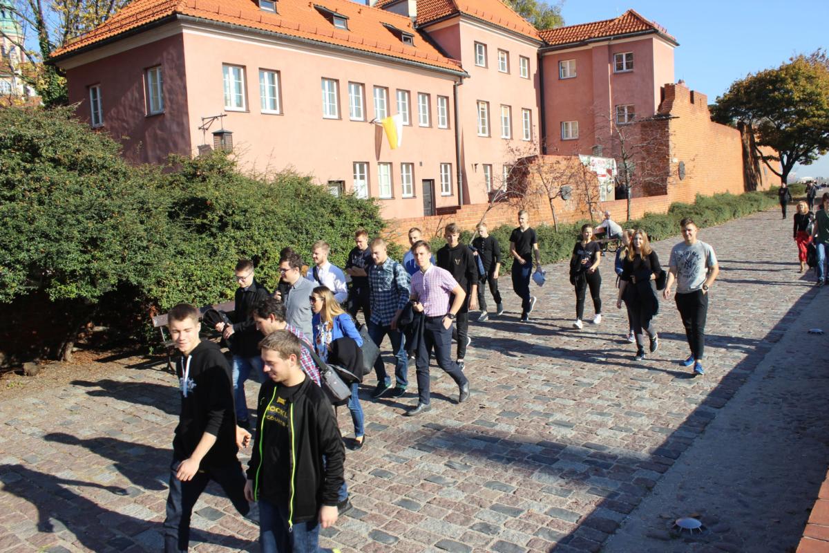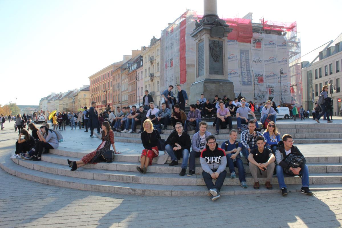 Edukacja jest pełniejsza, jeżeli uwzględnia bezpośredni kontakt ze sztuką. Doświadczyli tego uczniowie klas II TB i IV TMR, którzy wraz z wychowawcami (D. Kossą-Szoch i M. Baranowskim) 16 października w warszawskim Teatrze Kwadrat obejrzeli komedię „Trzy sypialnie”. Korzystając z pięknej, jesiennej pogody, młodzież spacerowała po Starym Mieście. Dużym zainteresowaniem cieszyły się także Ogrody Biblioteki Uniwersytetu Warszawskiego. Do refleksji skłoniły również takie miejsca, jak: kamień upamiętniający dom, w którym w latach 1878 – 1882 mieszkała Maria Konopnicka, czy pomnik poświęcony ofiarom lotniczej katastrofy smoleńskiej.