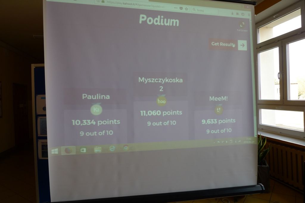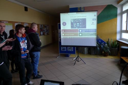 W ramach realizacji projektu „Cyberprzemoc – miej się na baczności!”, we wtorek, 27 marca, na długiej przerwie, odbył się KAHOOT sprawdzający wiedzę uczniów na ten temat.