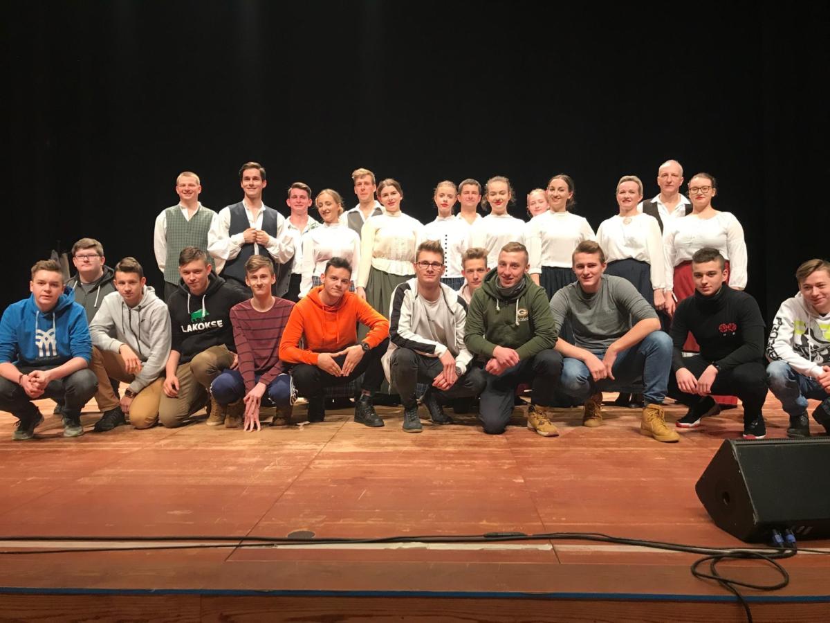 Uczniowie klas pierwszych w zawodach technik automatyk, technik mechanik i technik energii odnawialnej w piątek (22.02.2019 r.) uczestniczyli w koncercie edukacyjnym Zespołu Pieśni i Tańca „Suwalszczyzna” w Suwalskim Ośrodku Kultury. Tematem przewodnim widowiska taneczno – teatralnego były tańce karnawałowe wykonywane na balach karnawałowych w suwalskiej Resursie Obywatelskiej i potańcówkach w podsuwalskiej oberży na początku XX wieku. „Suwalszczyzna” zaprezentowała dostojnego mazura, skoczną polkę, pełnego werwy oberka tańczonych na wytwornych salonach oraz tańczone na wsiach żywiołowe kukiełki, krakowiaki, tance żydowskie i kadryle.