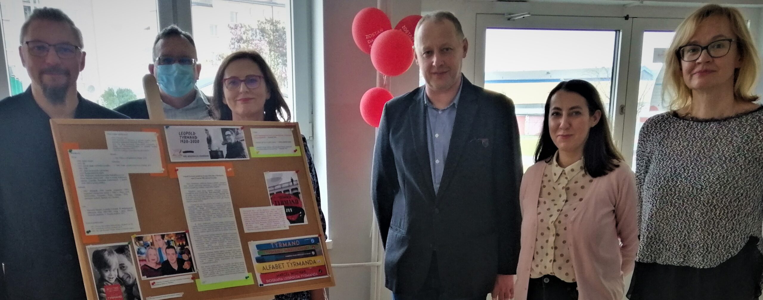 Przy okazji lekcji Panie Małgorzata Grnyo i Alina Mysiukiewicz przygotowały okolicznościową wystawę, zapraszając przy tym uczniów do odwiedzania biblioteki i wypożyczania dostępnych w szkolnym księgozbiorze książek Leopolda Tyrmanda.