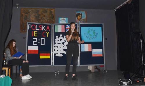 Uczestnicy konkursu prezentowali wiersze, piosenki i scenki rodzajowe w czterech językach obcych. Nasi uczniowie prezentowali swoje zdolności językowe, recytując wiersze poetów niemieckich. Niedogodnością rywalizacji był brak rozgraniczenia kategorii podczas oceniania, wszak czym innym jest scenka rodzajowa, a czym innym recytacja czy piosenka. Mimo to cieszy fakt, że oboje zostali nagrodzeni wyróżnieniami za recytację: Nikola Skowina za wiersz Wilhelma Buscha „Kritik des Herzens”, a Grzegorz Tylman za wiersz Johanna Wolfganga Goethego pt. „Mailied” z muzyką Edvarda Griega „Poranek” w tle. Konkurs zdecydowanie zdominowała piosenka.