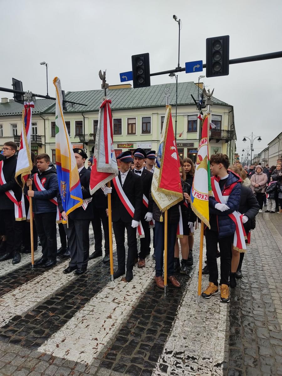 W miejskich obchodach 104. Rocznicy Odzyskania Niepodległości nie zabrakło reprezentacji naszej szkoły z pocztem sztandarowym na czele. Uroczystość o bardzo podniosłym charakterze rozpoczęła się pod pomnikiem żołnierzy POW, następnie przeniosła się do konkatedry św. Aleksandra i pod pomnik Marszałka Józefa Piłsudskiego.
