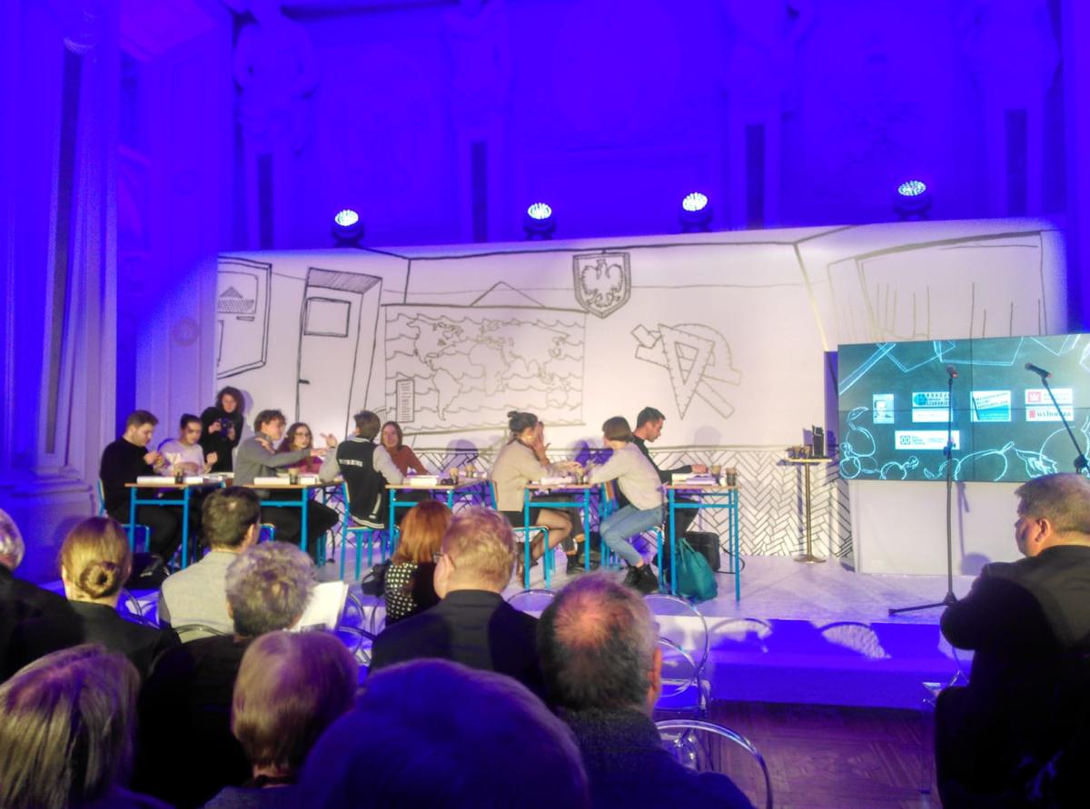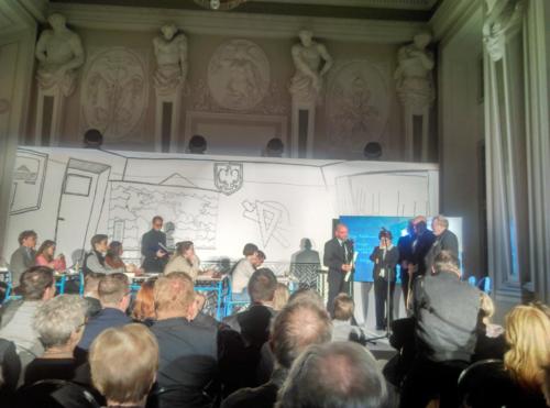 Wyczekiwanym przez wszystkich momentem tegorocznego zjazdu Młodzieżowych Klubów Historycznych była uroczysta gala wręczenia Nagrody Historycznej im. Kazimierza Moczarskiego w Pałacu Krasińskich, siedzibie Biblioteki Narodowej. Scenerią dla wręczenia nagrody była zaaranżowana klasa, a w niej ławki, krzesła, tablica i oczywiście uczniowie, którzy odpytywani przez prowadzącego galę – nauczyciela, prezentowali wszystkich nominowanych do nagrody. Elżbieta Moczarska – prezes Fundacji im. Kazimierza i Zofii Moczarskich wręczała wszystkim autorom nie tylko symboliczny ołówek, jako wyróżnienie i podziękowanie z propagowanie wiedzy o najnowszej historii, ale też słoiczek powideł śliwkowych, bo to waśnie śliwki rosnące niedaleko miejsca pochówku rodziców Pani Elżbiety, stały się symbolem płodności twórczej, efektem której jest tak długa lista wydanych w 2017 roku książek o historii Polski. Laureatem tej prestiżowej nagrody został Jerzy Kochanowski – autor książki pod tytułem „Rewolucja międzypaździernikowa. Polska 1956-1957”. Uzasadnienie przyznania nagrody, laudację wygłosił prof. Andrzej Friszke. Gratulacje złożyli Piotr Jakubowski, dyrektor Domu Spotkań z Historią – Instytucji Kultury m.st. Warszawy oraz Adam Michnik, publicysta, historyk, redaktor naczelny „Gazety Wyborczej”.