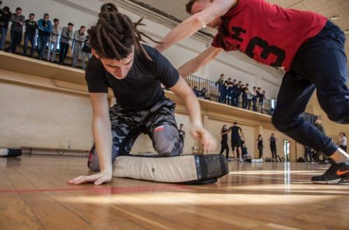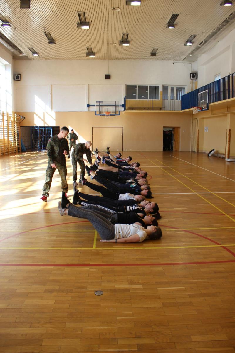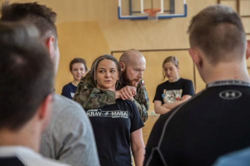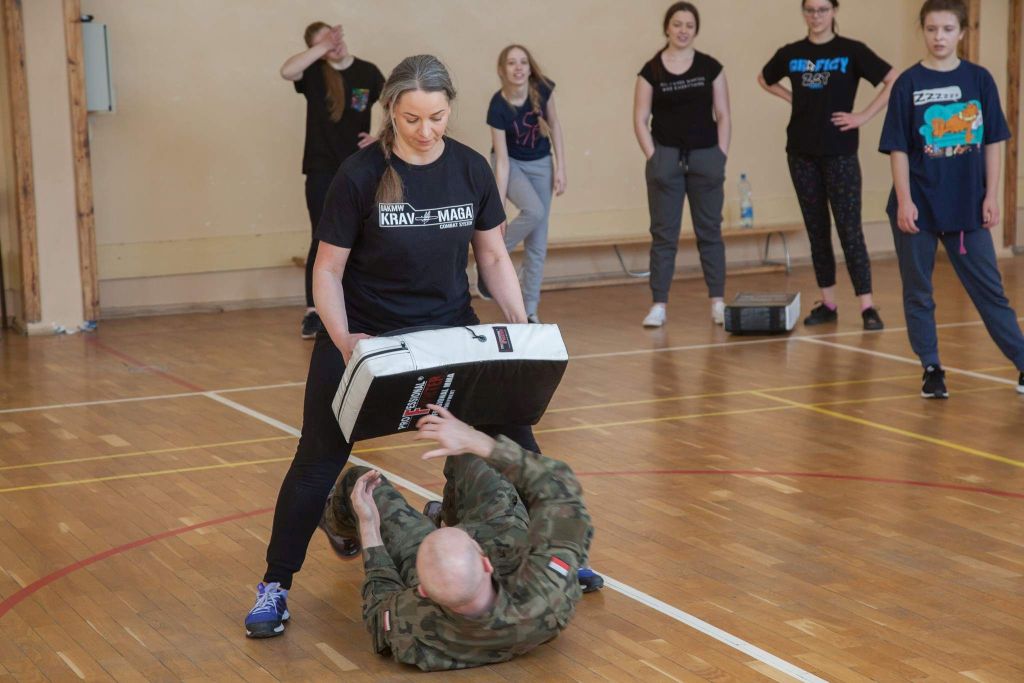 Krav maga to najskuteczniejszy system samoobrony na świecie, kombinacja różnych technik, prostych w nauce, opartych na naturalnych odruchach człowieka. Jej twórca, Imi Lichtenfeld, twierdził, że krav maga to pasja. Ten sposób samoobrony zyskał również wśród naszych uczniów duże zainteresowanie. Podczas zajęć młodzież chętnie ćwiczyła pod okiem trenerów – podporucznika Kamila Wróblewskiego oraz starszego kaprala Andrzeja Gajewskiego – podstawowe techniki sztuki: indywidualnie, w parach czy w zaaranżowanym tłumie.