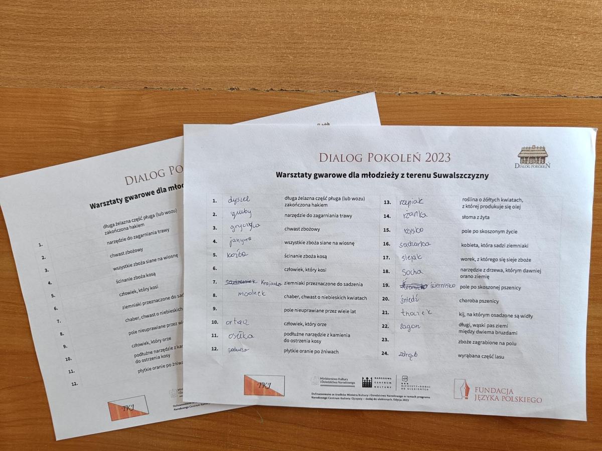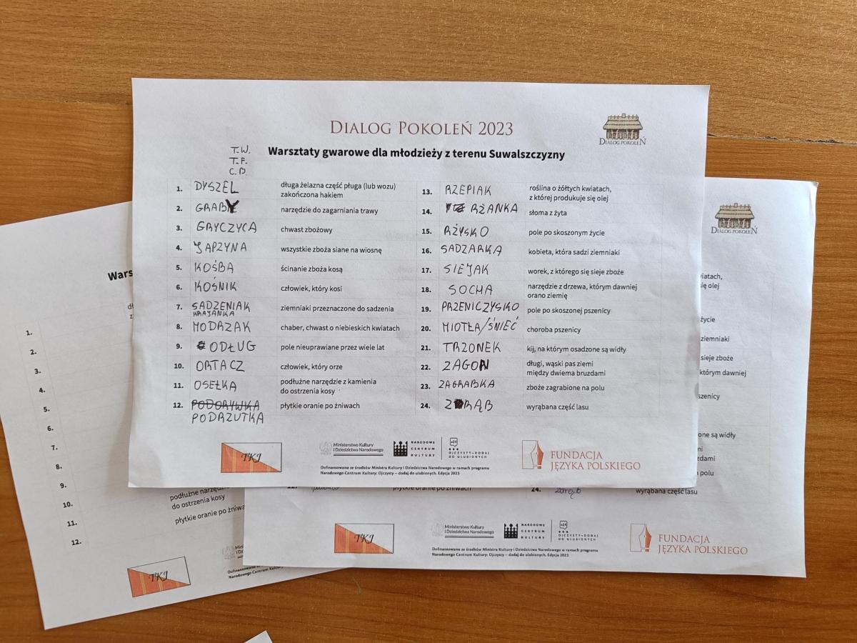 w niezwykle inspirujących, ale nie takich łatwych, jak się okazało, warsztatach gwarowych. Uczniowie w formie zabawy próbowali odgadnąć znaczenie słów lub dopasować do nich podane wyjaśnienia. Każda poprawna odpowiedź była premiowana nagrodą.