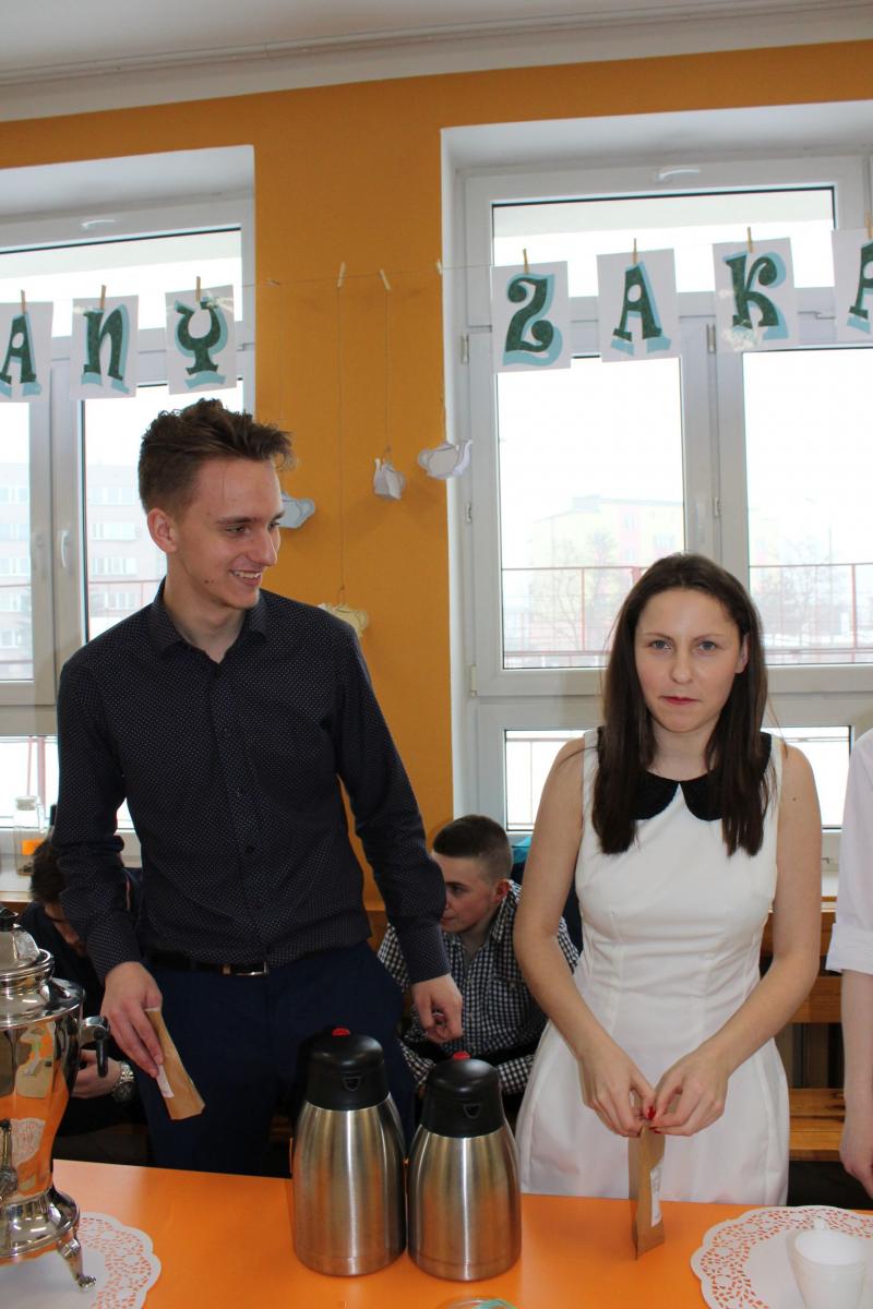 Pomysł zaproszenia do szkolnej herbaciarni pn. „Herbaciany Zakątek”, zaaranżowanej na ten dzień w holu na parterze, zbiegł się z dniem 8 marca. Herbatą częstowaliśmy nie tylko płeć piękną, ale wszystkich.