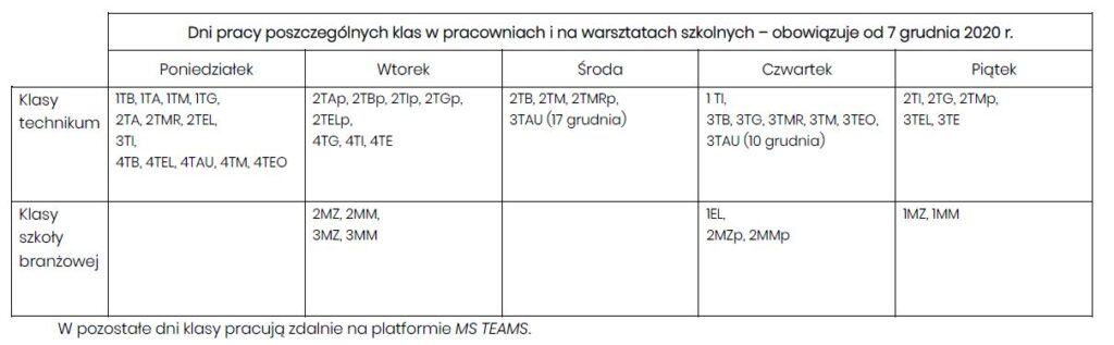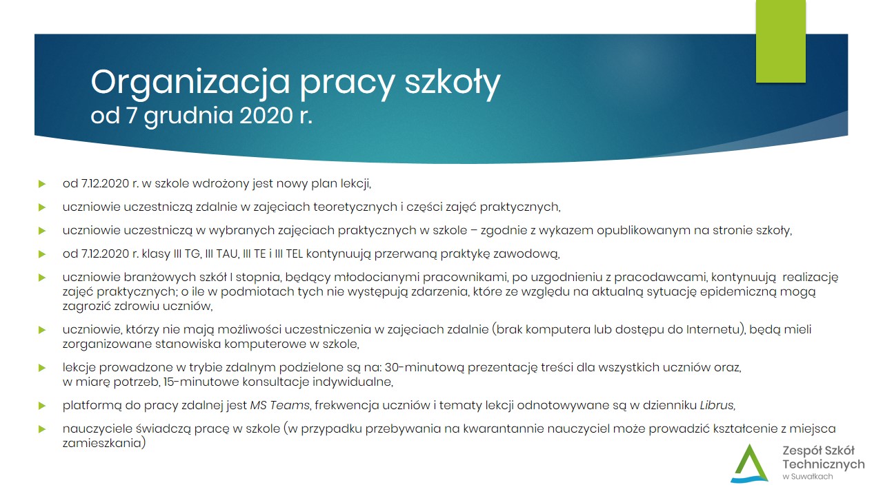 Organizacja pracy szkoły od 07.12.2020