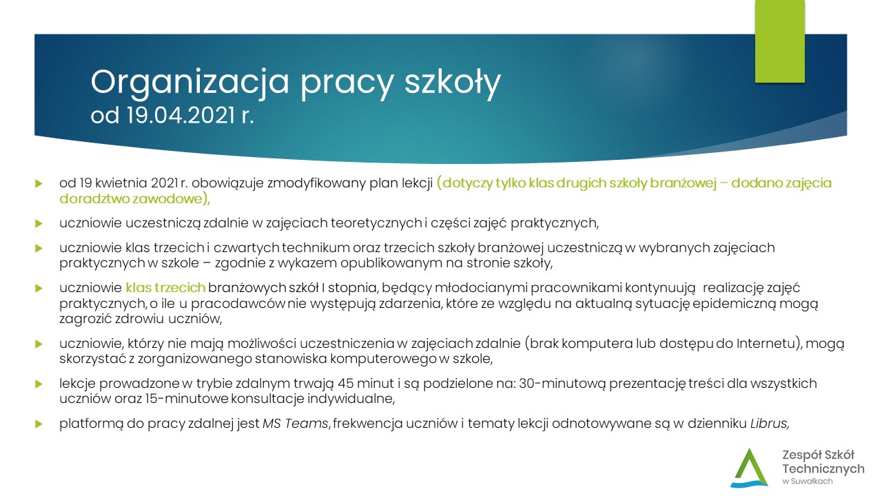 W pozostałe dni klasy pracują zdalnie na platformie MS TEAMS.