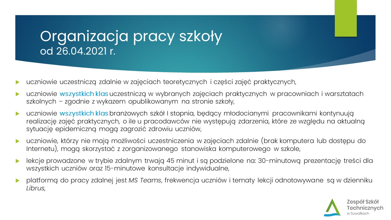 W pozostałe dni klasy pracują zdalnie na platformie MS TEAMS.