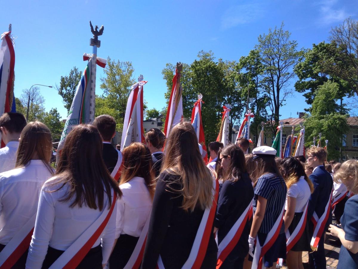 Wspólnie z mieszkańcami miasta 3 maja świętowaliśmy 227. rocznicę uchwalenia Konstytucji 3 maja. Wydarzenie to zajmuje ważne miejsce w historii Polski i w naszej szkolnej tradycji. Cyklicznie uczestniczymy w uroczystościach miejskich i przygotowujemy w szkole okolicznościowe wystawy.