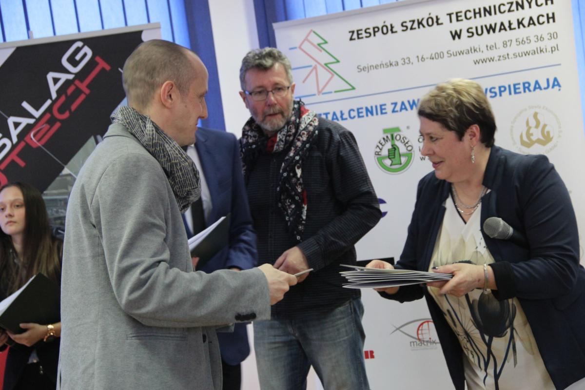 Jakub Pomichter, uczeń klasy 2 mechanik pojazdów samochodowych, Rafał Sobolewski, uczeń klasy 4 technik mechanik i Łukasz Zakrzewski, uczeń klasy 4 technik mechanik, za projekt „Przyrząd do ostrzenia płóz iceboardingu i bojerów typu DN” (Zespół Szkół Technicznych im. gen. Ignacego Prądzyńskiego w Augustowie) oraz Justyna Jakubanis i Anna Świerzbin, uczennice klasy 3 A technik budownictwa za projekt „Róże” (Zespół Szkól Technicznych w Suwałkach)