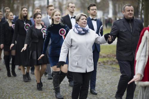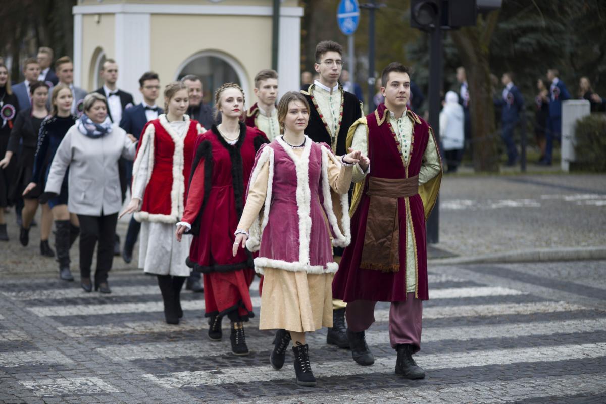 Zgodnie z wieloletnią szkolną tradycją krokami poloneza zapoczątkowaliśmy w przestrzeni miejskiej obchody Narodowego Święta Niepodległości. Wyraziliśmy tym samym dumę z przynależności do narodu polskiego.