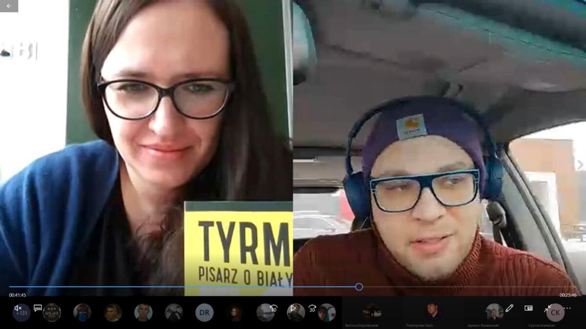 W pierwszym tygodniu po feriach, w środę 20 stycznia 2021 roku, odbyło się spotkanie online z Marcelem Woźniakiem – pisarzem i scenarzystą, autorem trylogii kryminalnej o detektywie Leonie Brodzkim oraz biografem Leopolda Tyrmanda.