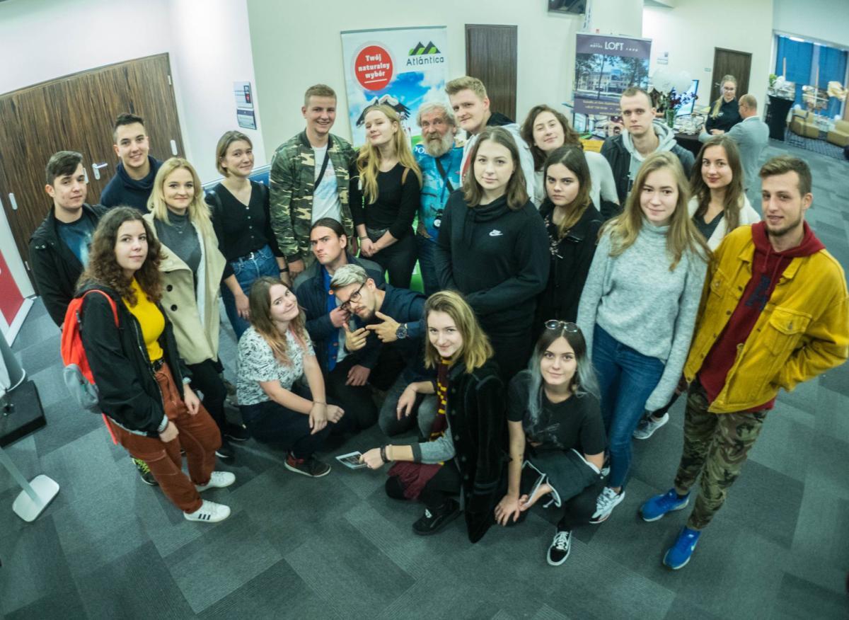 Uczniowie klasy IV TG i TO uczestniczyli w spotkaniu z Aleksandrem Dobą, podróżnikiem, który samotnie pokonał w kajaku Atlantyk. Czynu tego dokonał trzykrotnie i dlatego nie dziwi fakt, że doceniła go amerykańska edycja National Geographic przyznając mu tytuł podróżnika roku. Pan Aleksander w niezwykle barwny sposób opowiedział o swoich przygodach, za co otrzymał gromkie brawa.