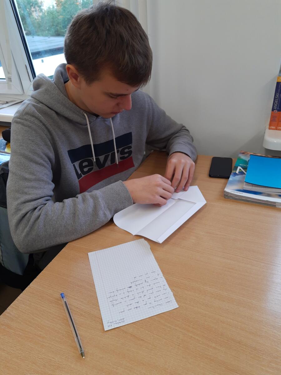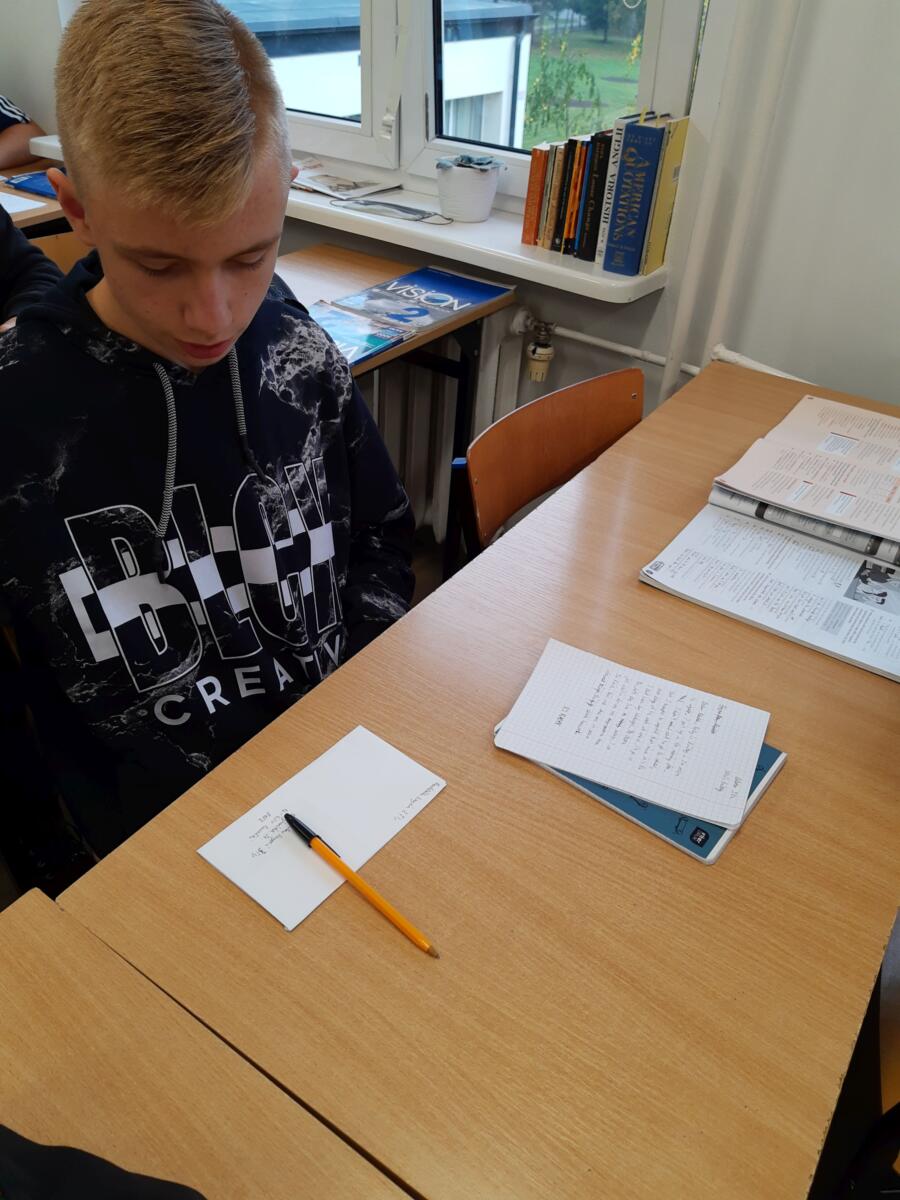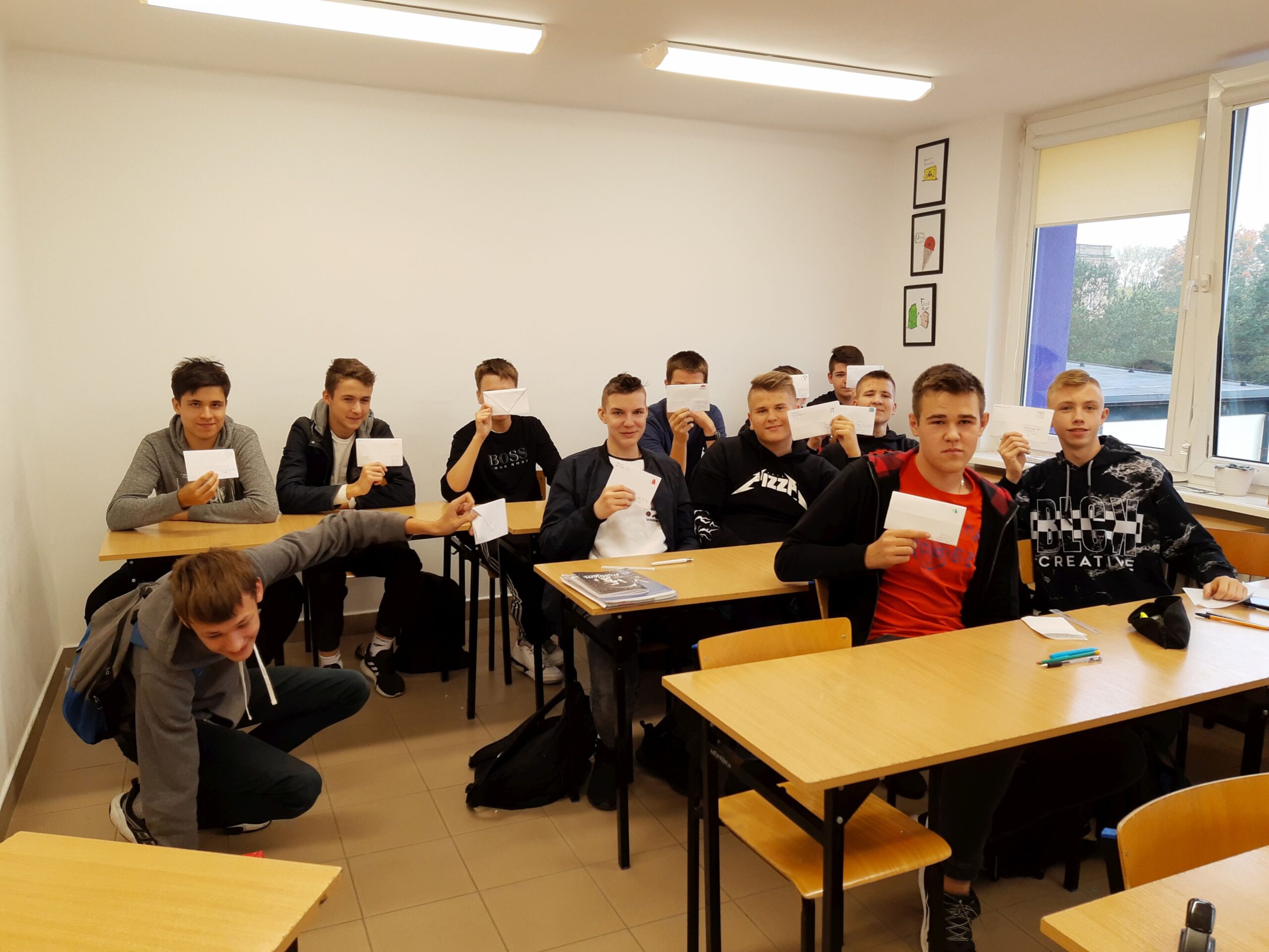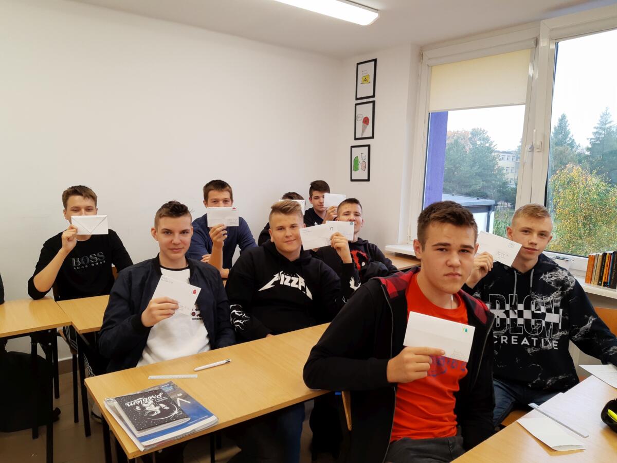 Z tej okazji niektórzy uczniowie Zespołu Szkół Technicznych (kl. 2 TAg, 1TM, 1 TA, 2 TIp oraz 3 TA) na lekcjach j. angielskiego pisali nietypowe listy do siebie, które będą im dostarczone za rok, czyli 9 października. Przy okazji uczniowie przypomnieli sobie zasady pisania listów oraz adresowania koperty.