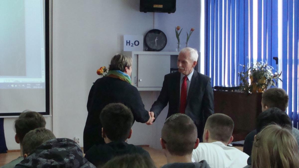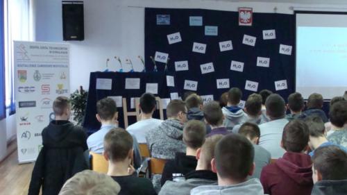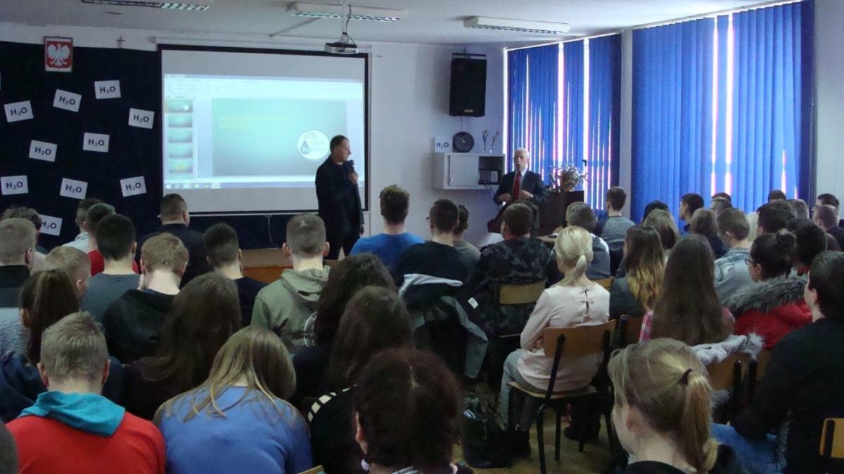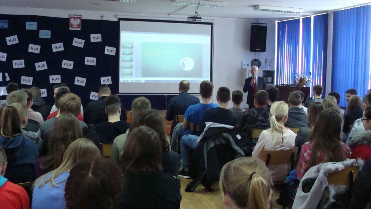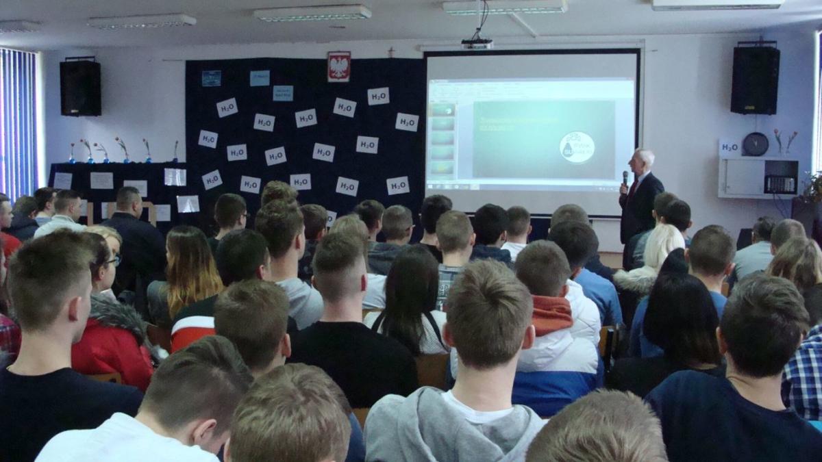 Podczas gdy młodzież była z wizytą w siedzibie Przedsiębiorstwa Wodociągów i Kanalizacji, w szkole uczniowie klas: 1TB, 2 TMR A i 2 TMR B, 4 TEO i 4 TUS, 1 TEO i 1TM, 3 TB A i 3 TB B odbyli spotkanie z Panem Grzegorzem Kochanowiczem, prezesem PWiK. Temat ten sam, bo i święto to samo.