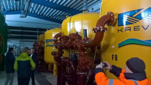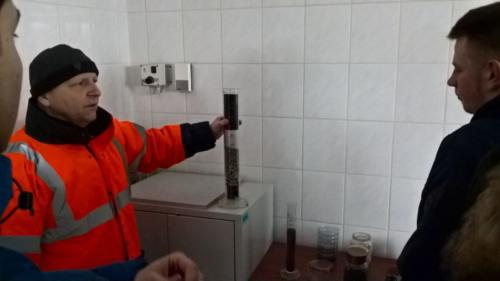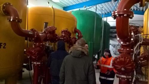 Pracownik zakładu oprowadził uczniów, pokazując drogę, jaką pokonuje woda pobrana z odwiertu, zanim trafi do naszych kranów. W pierwszej kolejności uczniowie zobaczyli studnie pompujące wodę do zbiorników wstępnych. Następnie odwiedzili halę ze zbiornikami filtrującymi i hale przepompowni. W dalszej kolejności zwiedzili laboratorium jakości wody, w którym można było zobaczyć filtry manganowe. W programie wycieczki była też dystrybutornia kontrolująca ciśnienie w wodociągach oraz sprawność przesyłu wody pracująca całą dobę. Ostatnim etapem wędrówki wody przed wpuszczeniem jej do sieci wodociągowej jest naświetlenie oczyszczonej wody promieniami UV w celu ostatecznego wyeliminowania zanieczyszczeń biologicznych, które odbywa się w głównej hali przesyłowej.