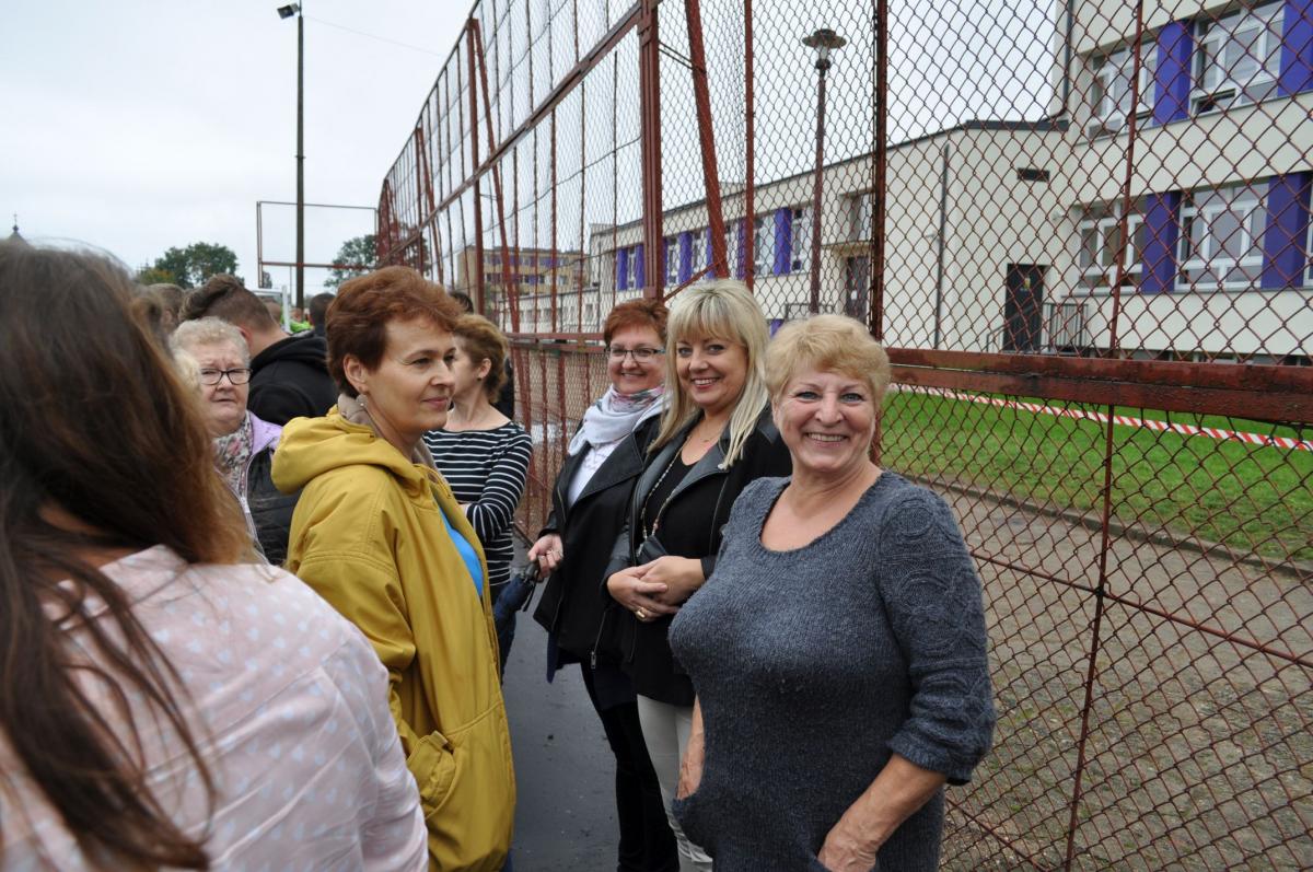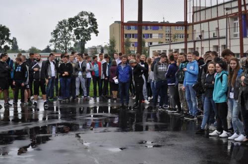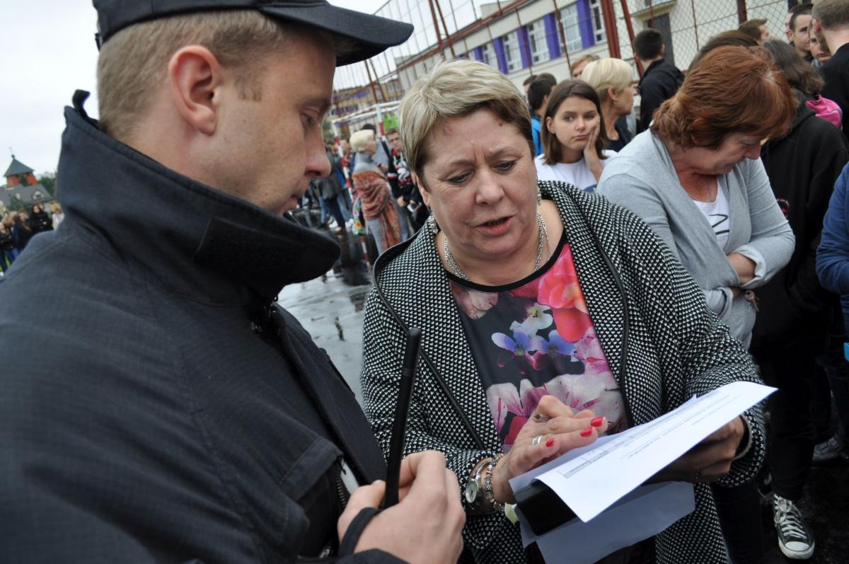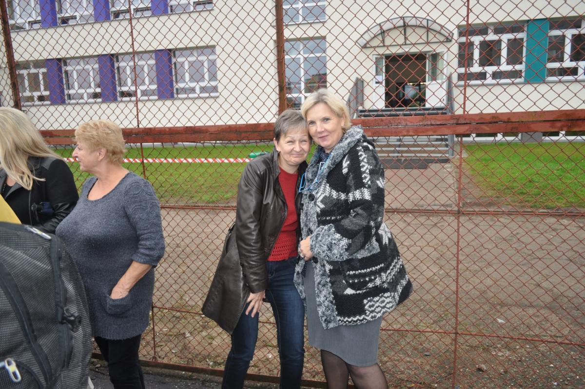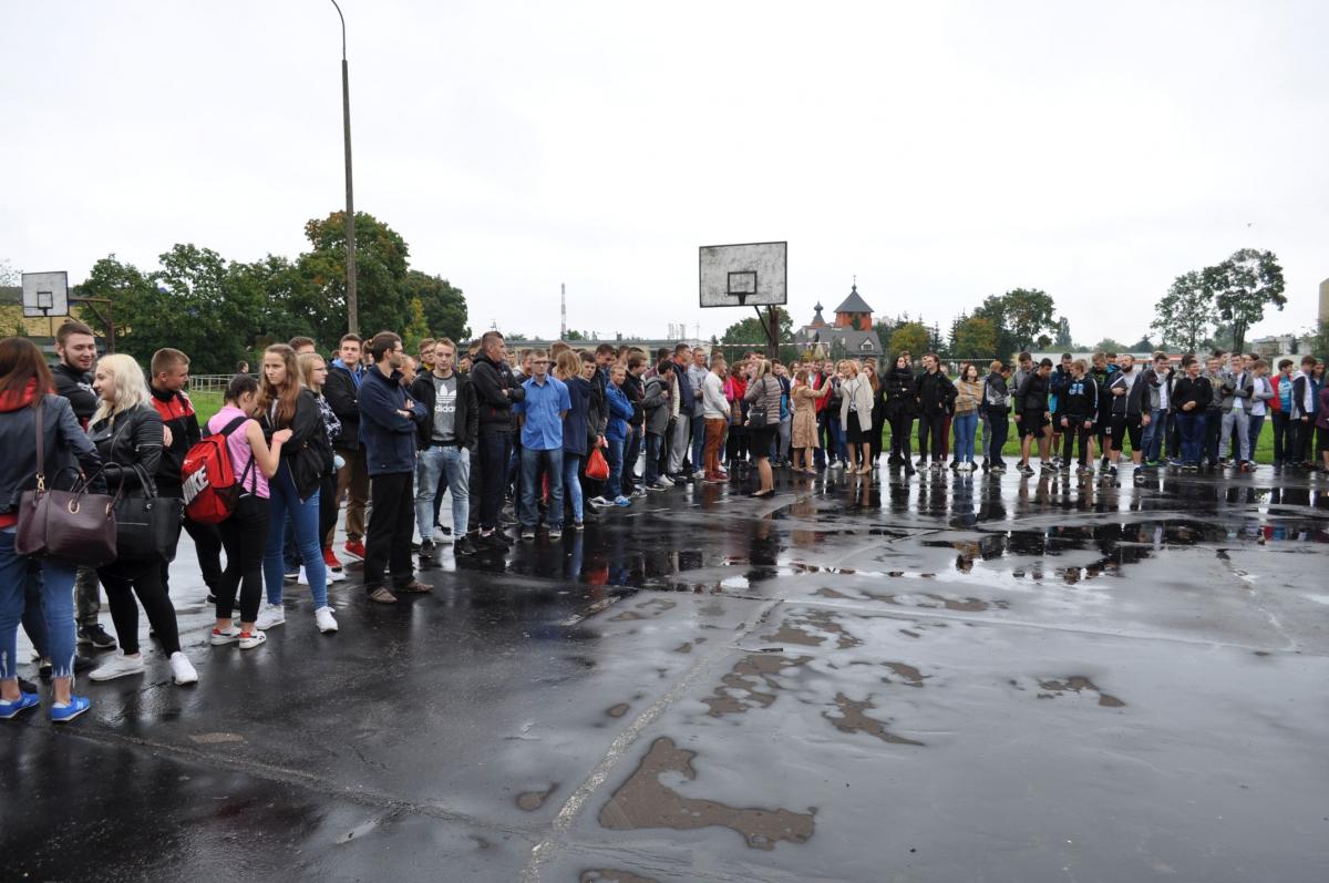 Pod bacznym okiem zastępcy komendanta miejskiego PSP, mł. brygadiera Pana Arkadiusza Buchowskiego, dowódca jednostki ratowniczo-gaśniczej odebrał meldunek o liczbie osób ewakuowanych od dyrektor naszej szkoły Anny Musiałowicz.