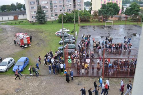 Dzisiaj w naszej szkole, pod nadzorem Komendy Miejskiej Państwowej Straży Pożarnej w Suwałkach, odbyła się próbna ewakuacja.