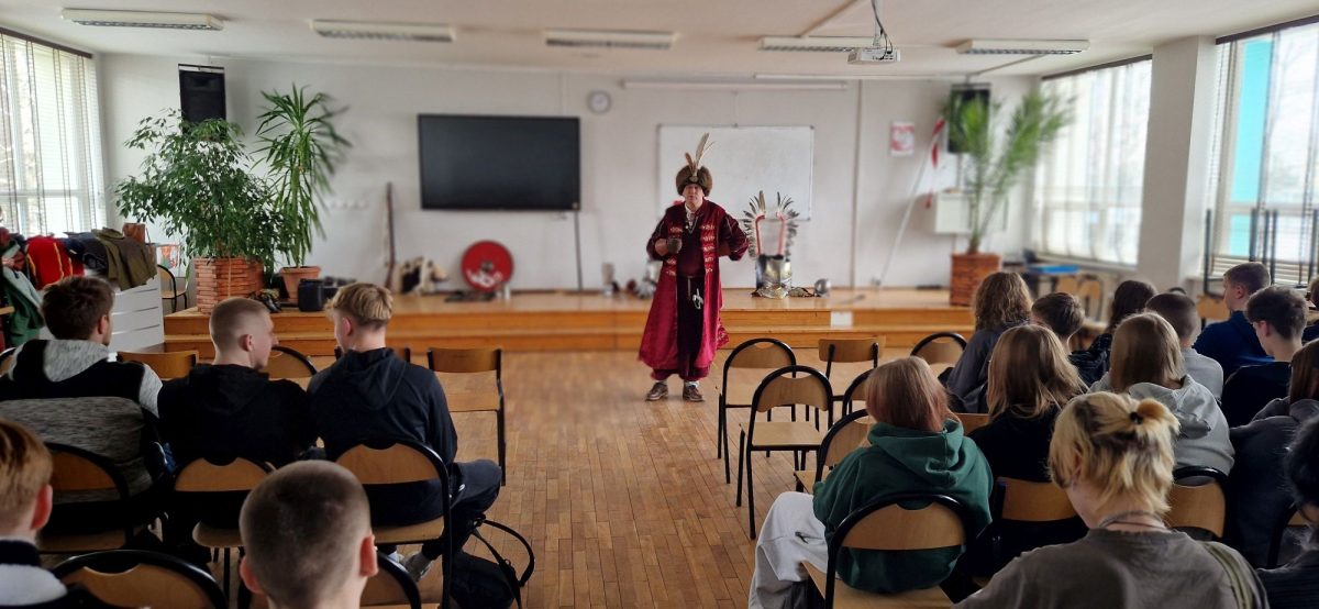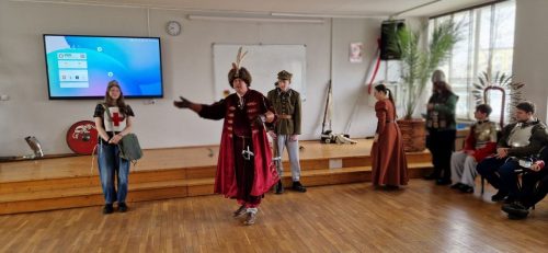 W środę 4 marca w szkole odbyła się żywa lekcja historii, którą prowadził Pan Jacenty Ordowski. Bardzo barwnie opowiedział uczniom o zamierzchłych czasach. Opowieści były podszyte licznymi ciekawostkami i humorem, a uczniowie mogli brać czynny udział w tej niezwykłej lekcji.