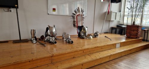 Opowieści o wojach piastowskich i czasach rycerskich , kiedy to zakuci w zbroje i z mieczem w ręku bronili honoru, Ojczyzny i damy swego serca. Podczas zajęć Pan Jacenty opowiedział o zwyczajach rycerskich, elementach rycerskiej zbroi oraz rodzajach używanej przez rycerzy broni. Uczniowie dowiedzieli się, jaka była droga do stanu rycerskiego, zaczynając od pazia, poprzez giermka, kończąc na pasowaniu na rycerza..