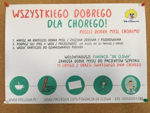 Kampania ta zorganizowana została z okazji Światowego Dnia Chorego, który obchodzimy 11 lutego (przypominamy, że święto to ustanowił papież Jan Paweł II 13 maja 1992 roku). Założeniem akcji było napisanie listów do chorych z życzeniami, pozdrowieniami, wyrazami życzliwości i wsparcia, by dodać sił ludziom, których dotknęło cierpienie.