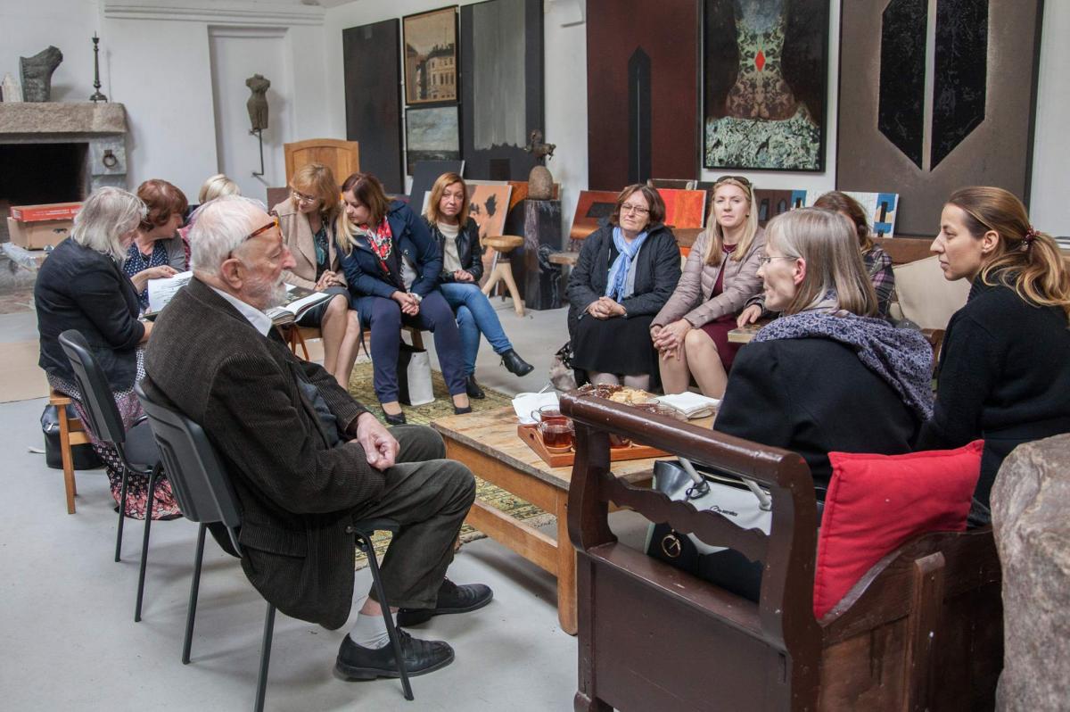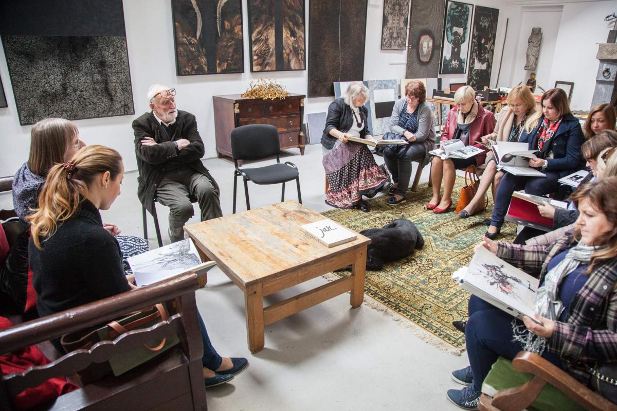 Rozmowa w pracowni artysty toczyła się niespiesznie wokół polskiej kultury, wokół trendów, jakie wyznaczają współcześni artyści, wokół nauczycieli, którzy znacząco wpisali się w życiorys artystyczny profesora (np. Strzemiński), wokół polskiej sztuki awangardowej. Andrzej Strumiłło powiedział między innymi: „Ze szkoły Strzemińskiego wyniosłem artystyczny niepokój i chęć spróbowania wszystkiego”. My też mieliśmy okazję „zakosztować” tych smaków, oglądając obrazy, rzeźby, dotykając książek wypełnionych zapiskami z życia, bogato ilustrowanych autorskimi fotografiami.
