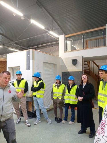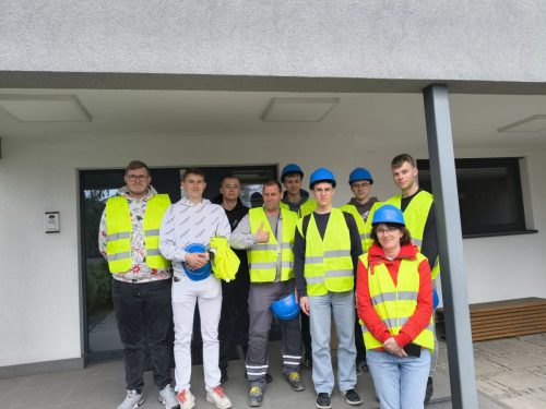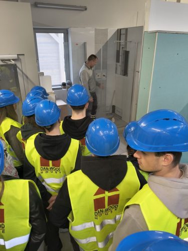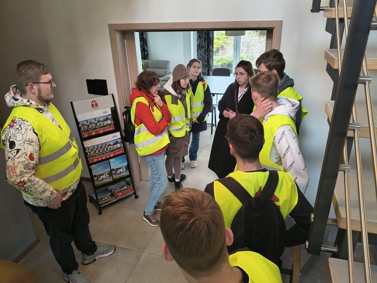 W piątek, 17 kwietnia 2026 roku, uczniowie klasy trzeciej monter zabudowy i robót wykończeniowych w budownictwie oraz czwartej i piątej technikum budownictwa mieli okazję odwiedzić zakład produkcyjny firmy Danwood S.A., lidera w produkcji domów prefabrykowanych o konstrukcji drewnianej.