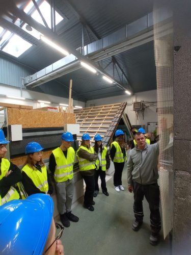 Celem wycieczki było zapoznanie się z zasadami funkcjonowania zakładu oraz realizowanym procesem produkcyjnym. W pierwszej kolejności zwiedziliśmy w Bielsku Podlaskim halę produkcyjną oraz na placu budowy, gdzie mogliśmy dokładnie obejrzeć technologię przygotowania prefabrykatów oraz ich montaż.