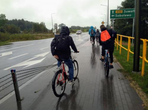 Punktem docelowym wyprawy był zespół poklasztorny w Wigrach. Mimo niesprzyjającej pogody uczestnikom udało się przejechać zaplanowaną trasę wiodącą m.in. przez wieś Leszczewo, w której to, w roku 1999, zatrzymał się na chwilę Jan Paweł II, będąc z wizytą na ziemi suwalsko-augustowskiej, zwiedzić klasztorne wzgórze jak i sam zespół poklasztorny w Wigrach. Wszyscy cykliści wrócili zadowoleni i wzbogaceni o niezapomniane wrażenia, bo jak się okazało, choć klasztor wigierski znajduje się tak blisko Suwałk, jest nieznany wielu uczniom.