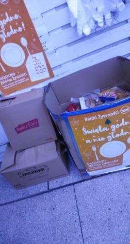 Współpracujemy od lat z Bankiem Żywności w Suwałkach. Zadaniem wolontariuszy jest zapraszanie do zbiórki między innymi poprzez wręczanie z życzliwością i uśmiechem ulotek informujących o zbiórce, następnie odbieranie darów z podziękowaniem dla ofiarodawców i przepakowywanie żywności z kosza do kartonu i segregowanie żywności, dbanie o porządek i czystość wokół stanowiska. Produkty te trafiają dla potrzebujących mieszkańców naszego miasta. Uczniowie ZST uczestniczyli w dniach 26.11. – 27.11.2021r. w Świątecznej Zbiórce Żywności organizowanej przez Stowarzyszenie Bank Żywności Suwałki – Białystok. Razem sprawiliśmy, żeby te Święta były godne, a nie głodne. Dziękujemy!