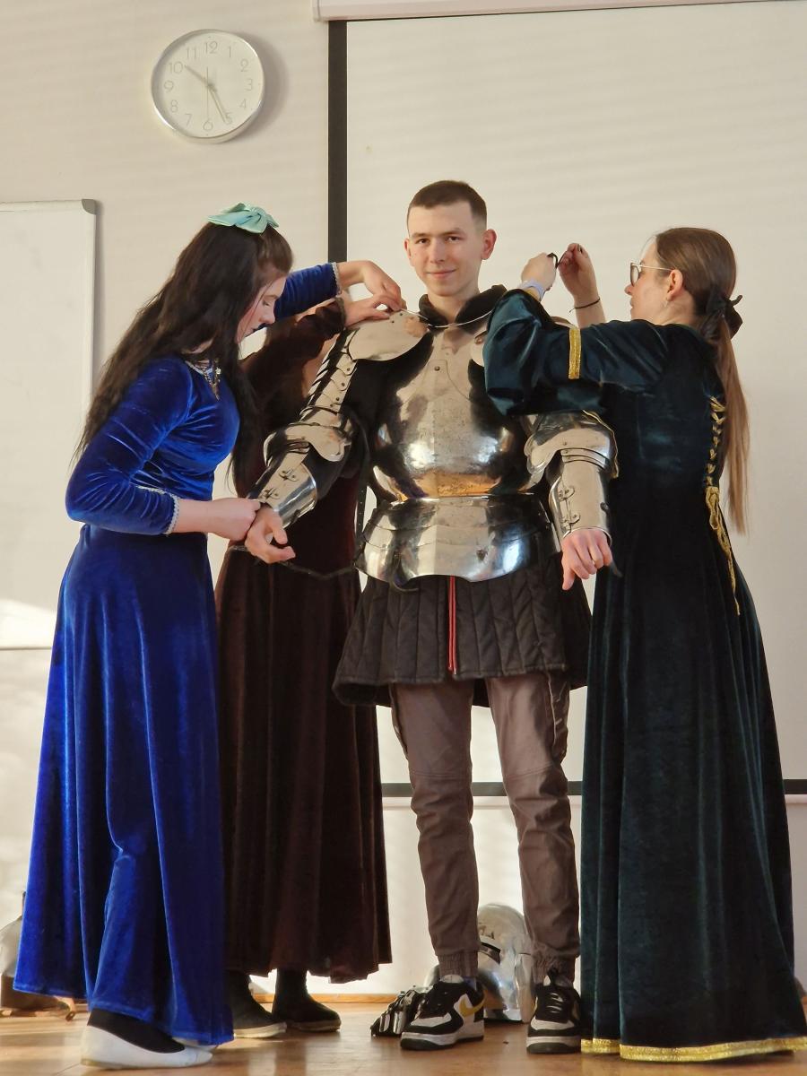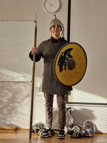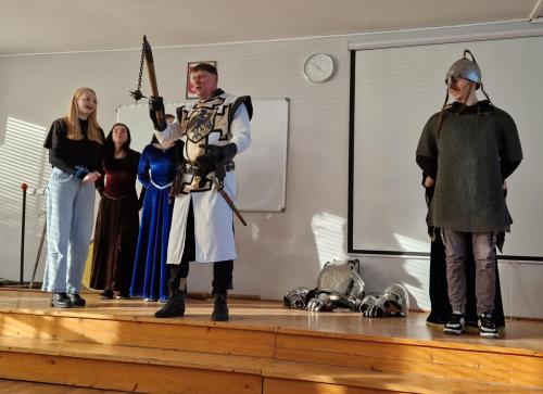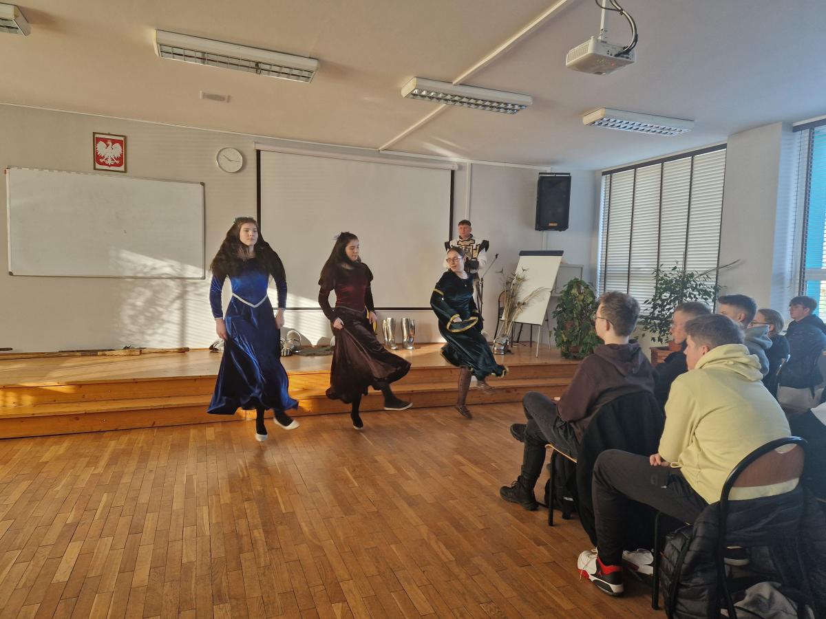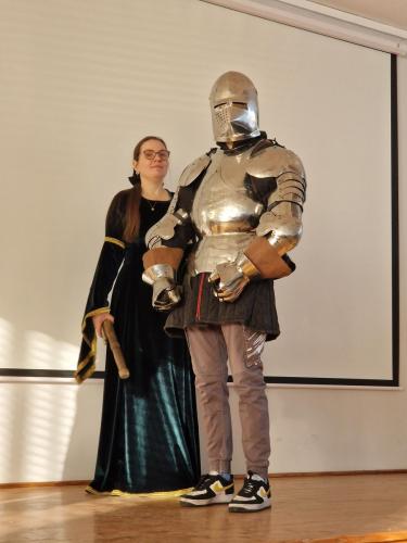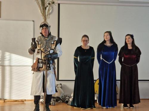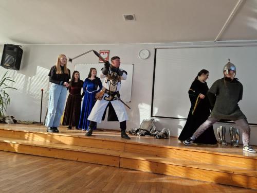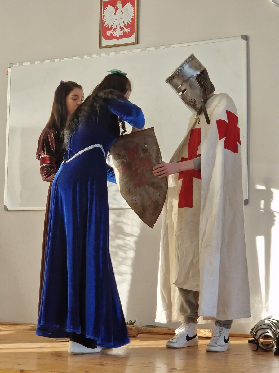 Tym razem, w trakcie pokazu młodzież miała okazję, dobrze się bawiąc, zdobyć wiedzę historyczną na temat wypraw krzyżowych. Podczas barwnego i niezwykle sugestywnego opowiadania przygotowanego przez pana Jacentego Ordowskiego uczniowie mogli również sprawdzić swoją zwinność, refleks i przymierzyć stroje z epoki.