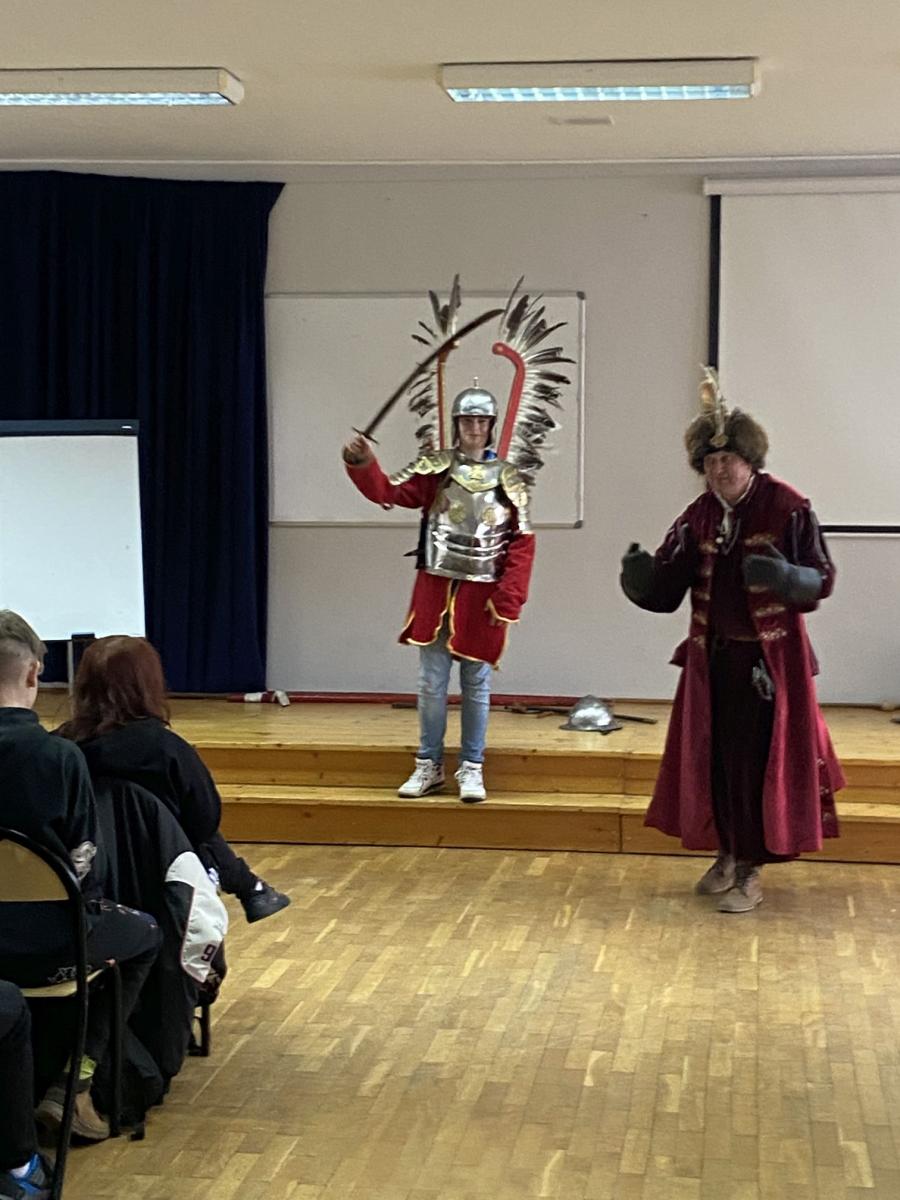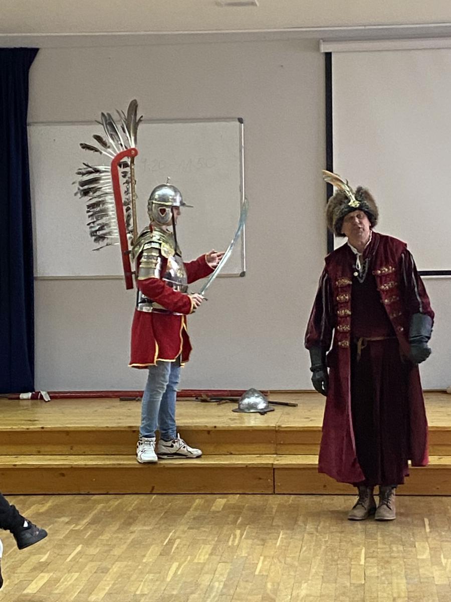 Kolejny raz uczniowie naszej szkoły mogli uczestniczyć w pokazie uzbrojenia dawnych formacji wojskowych. Tym razem było to uzbrojenie husarii polskiej z XVII wieku.